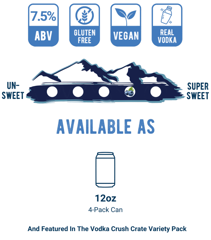 From Bold Rock Craft Cocktails blends real vodka with the sweet and tart combination of blueberries and pomegranate. Lightly effervescent, gluten-free, and at 7.5% ABV, a highly crushable cocktail.